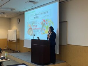 衛生講義では、シップヘルスケアフード株式会社の青津有希 様にご登壇いただき、「当社の衛生管理状況と今後の衛生管理」についてご講義いただきました